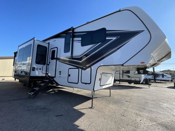 The Momentum M-Class fifth wheel toy haulers by Grand Design are lighter than the Momentum yet aren't lightweight on features when it comes to elegant design, luxury and a "Class" of its own! The chef-inspired kitchen provides a free-standing 3.7 cu. ft. gas range, a four burner cooktop with cast iron grill, an electronic ignition oven, and a digital display and interior oven light, plus 42,500 BTU of cooking power. The upgraded main bathroom offers solid surface counter tops, a three-jet shower panel system, a shower wand, and a teak bench seat. Each toy hauler includes a triple insulated garage floor, Tuff-Ply gas and oil resistant garage flooring, 2,500 lb. rated flush-mount tie-downs, and a Fast Ramp rear ramp door with two-sided lift-assist technology making it easy for one person to operate. And the MORryde CRE3000 suspension system and the rubber pin box, plus the upgraded axle hangers provide performance and smooth towing to your favorite destinations!
