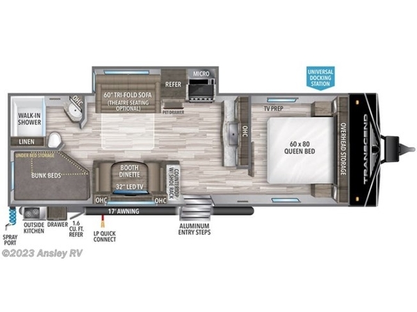 Transcend XPLOR Power Package: LED Interior Lights, Power Awning, AM/FM Bluetooth Stereo, Hi Definition LED TV, Exterior Speakers, Detachable Power Cord, USB Port, Motion Sensor Lights in Key Areas, Backup Camera Prep, Battery Disconnect Switch, HD TV Antenna, Power Tongue Jack