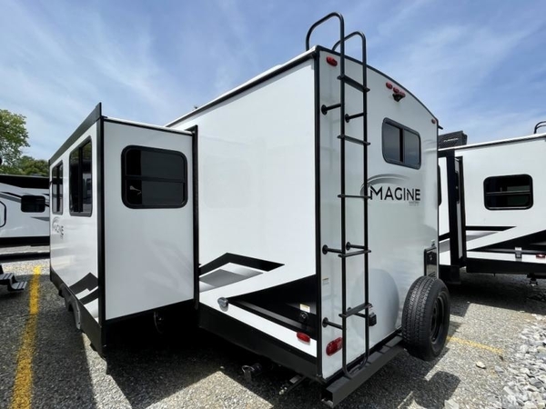 Just imagine leaving the world behind and secluding yourself away with your favorite people in your Grand Design Imagine travel trailer! The Imagine has been designed to enjoy extended season camping and includes a high-capacity furnace, a heated and enclosed underbelly with suspended tanks, a designated heat duct to the subfloor, and a high-density roof insulation with attic vent. You'll have maximum head room on the interior with 81" radius ceilings, and large panoramic windows to let in natural lighting. The exclusive drop-frame pass-through storage compartment is going to allow you to bring along lots of equipment, and the universal docking station is an all-in-one location for utilities and hook-ups. You'll also have industry-leading tank capacities so that you can fill and empty your tanks less often.
