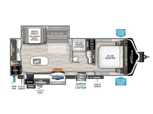 The Imagine 2670MK comes equipped with a range of upscale amenities to enhance your camping experience, including air conditioning, heating systems, entertainment options, and advanced technology features. These amenities ensure that you can enjoy modern comforts while immersing yourself in nature.