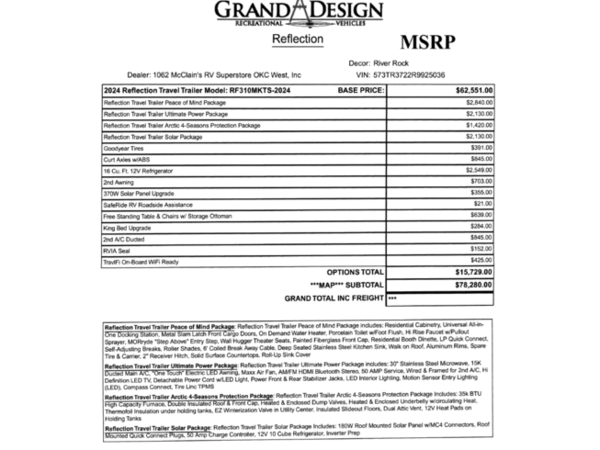 Grand Design Reflection travel trailer 310MKTS highlights: