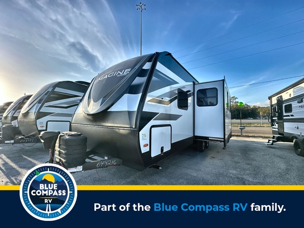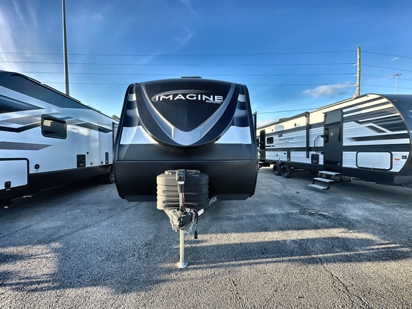 Just imagine leaving the world behind and secluding yourself away with your favorite people in your Grand Design Imagine travel trailer! The Imagine has been designed to enjoy extended season camping and includes a high-capacity furnace, a heated and enclosed underbelly with suspended tanks, a designated heat duct to the subfloor, and a high-density roof insulation with attic vent. You'll have maximum head room on the interior with 81" radius ceilings, and large panoramic windows to let in natural lighting. The exclusive drop-frame pass-through storage compartment is going to allow you to bring along lots of equipment, and the universal docking station is an all-in-one location for utilities and hook-ups. You'll also have industry-leading tank capacities so that you can fill and empty your tanks less often.