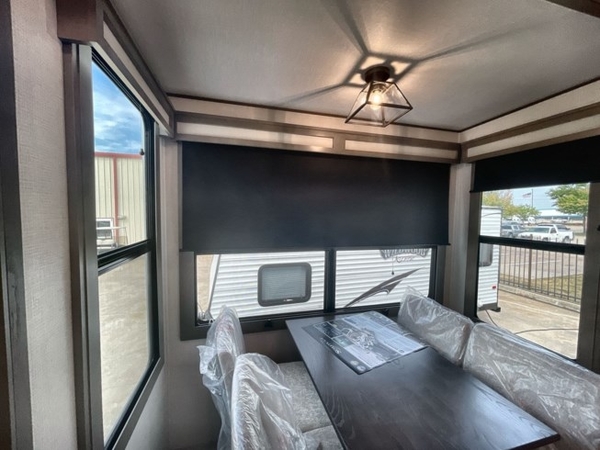 Each Solitude fifth wheel by Grand Design features a 101" wide-body construction, heavy duty 7,000 lb. axles, frameless tinted windows, and high-gloss gel coat sidewalls. You can camp year around thanks to the Weather-Tek Package that includes a 35K BTU high-capacity furnace, an all-in-one enclosed and heated utility center, and a fully enclosed underbelly with heated tanks and storage. Inside, you'll love the premium roller shades, hardwood cabinet doors, solid surface countertops and sinks, plus residential finishes throughout to make you truly feel at home. Each model also includes a MORryde CRE3000 suspension system, self adjusting brakes, and a MORryde pin box that will provide smooth towing from home to campground. Affordable luxury is possible with the Solitude fifth wheels; choose yours today!