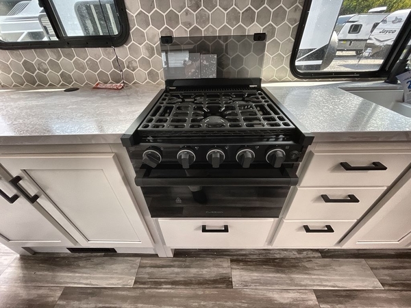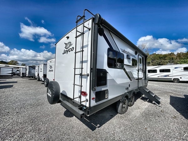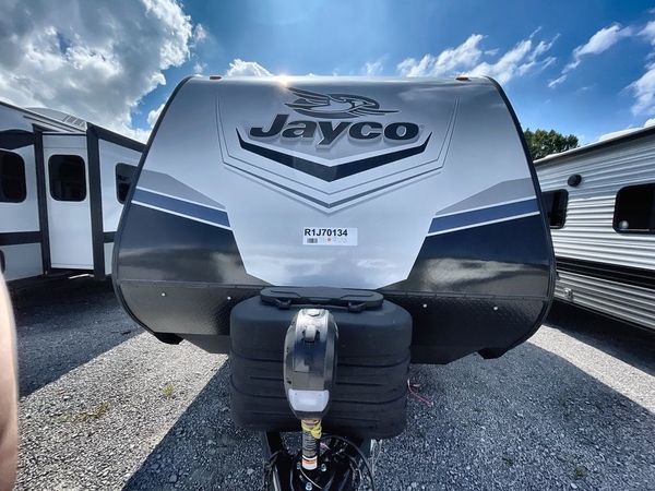 With any Jay Feather travel trailer by Jayco, you will experience an easy-to-tow, lightweight dual axle RV that is built on an American-made frame with an aerodynamic, rounded front profile with a diamond plate to protect against road debris, and includes Azdel composite in the perimeter walls, and Stronghold VBL vacuum-bonded, laminated floor and walls, plus the Magnum Truss roof system. Also included are features in the Customer Value package, and the Sport package which offers aluminum tread entry steps, roof-mount solar prep, an LED TV, and the Glacier package which includes an enclosed underbelly. The interior provides residential-style kitchen countertops with a decorative backsplash, residential plank-style vinyl flooring for easy care, a decorative wallboard for style, and ball-bearing drawer guides with 75 lb. capacity to mention a few of the amenities. Choose your favorite today!