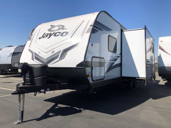 With any Jay Feather travel trailer by Jayco, you will experience an easy-to-tow, lightweight dual axle RV that is built on an American-made frame with an aerodynamic, rounded front profile with a diamond plate to protect against road debris, and includes Azdel composite in the perimeter walls, and Stronghold VBL vacuum-bonded, laminated floor and walls, plus the Magnum Truss roof system. Also included are features in the Customer Value package, and the Sport package which offers aluminum tread entry steps, roof-mount solar prep, an LED TV, and the Glacier package which includes an enclosed underbelly. The interior provides residential-style kitchen countertops with a decorative backsplash, residential plank-style vinyl flooring for easy care, a decorative wallboard for style, and ball-bearing drawer guides with 75 lb. capacity to mention a few of the amenities. Choose your favorite today!