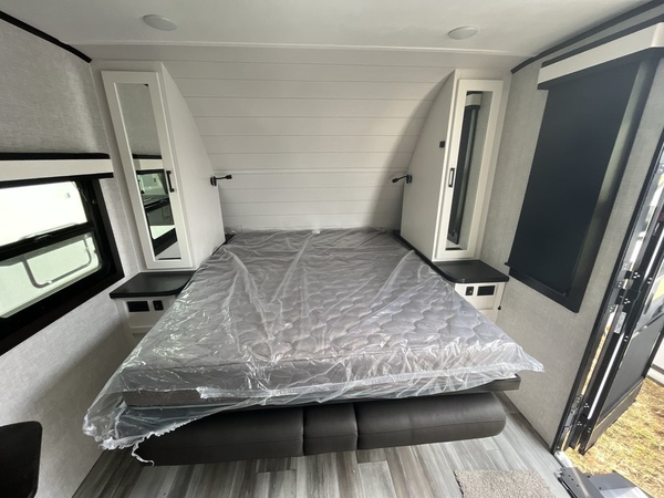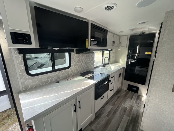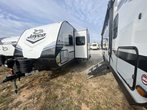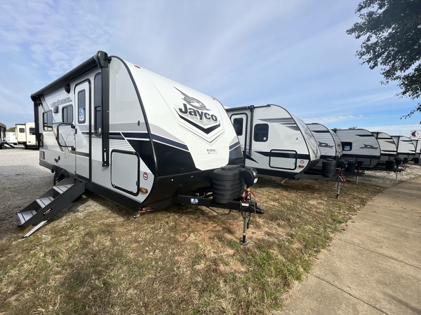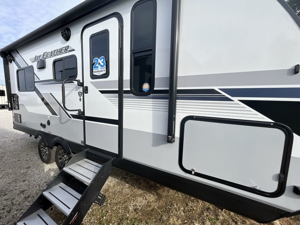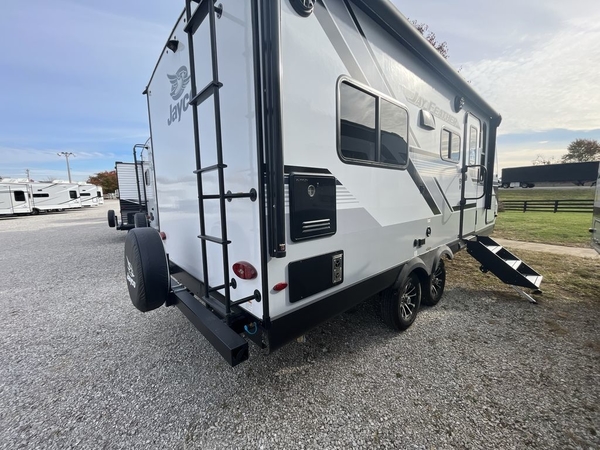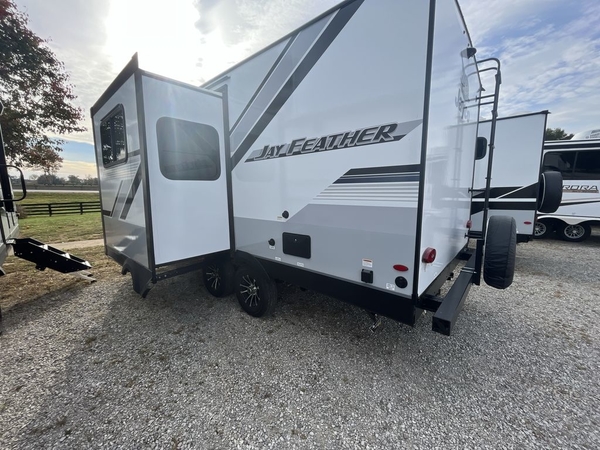 With any Jay Feather travel trailer by Jayco, you will experience an easy-to-tow, lightweight dual axle RV that is built on an American-made frame with an aerodynamic, rounded front profile with a diamond plate to protect against road debris, and includes Azdel composite in the perimeter walls, and Stronghold VBL vacuum-bonded, laminated floor and walls, plus the Magnum Truss roof system. Also included are features in the Customer Value package, and the Sport package which offers aluminum tread entry steps, roof-mount solar prep, an LED TV, and the Glacier package which includes an enclosed underbelly. The interior provides residential-style kitchen countertops with a decorative backsplash, residential plank-style vinyl flooring for easy care, a decorative wallboard for style, and ball-bearing drawer guides with 75 lb. capacity to mention a few of the amenities. Choose your favorite today!