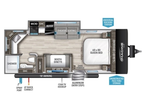 This travel trailer comes with a host of amenities to elevate your outdoor experience, including a power awning, LED lighting, and a premium entertainment system. Its lightweight construction and tandem axles make it effortless to tow and navigate, ensuring a stress-free travel experience. Whether you're eager to explore the beauty of nature or unwind at a campground, the Imagine XLS 22MLE offers the ideal blend of comfort and functionality for your 2024 escapades.