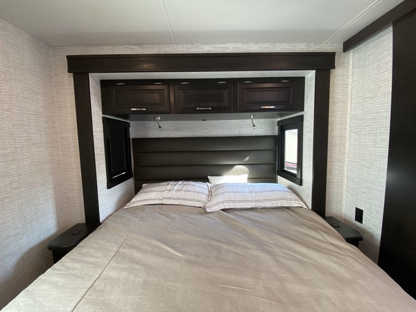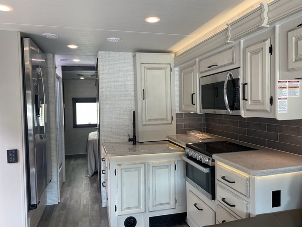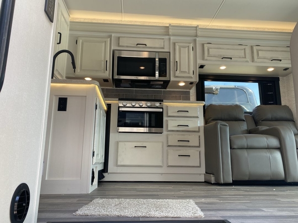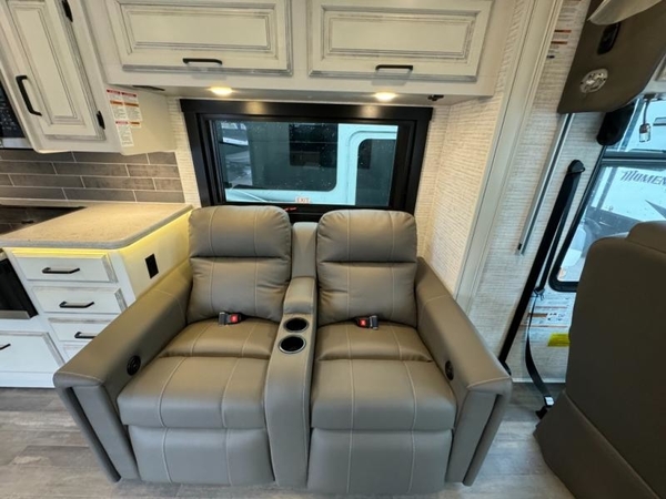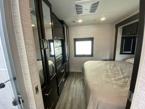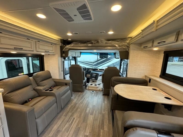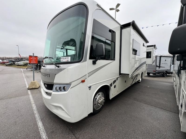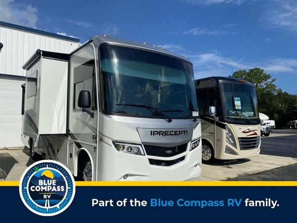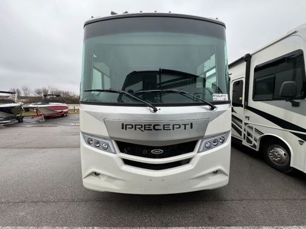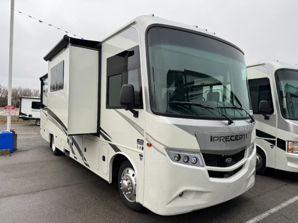 The Jayco Precept Class A gas motorhome comes with some features that you'll only find on a Jayco product, like the JRIDE PLUS which offers you a powerful blend of precise handling and renowned stability on the road and the Firefly total coach control system which allows you to control your coach's operations from just about anywhere with your phone. You'll find two-point lap seatbelts in all designated seating locations, and the one-piece, seamless fiberglass front and rear caps resist wear and tear over the years. The Precept also offers you the lightest yet strongest construction in the industry with the Stronghold VBL lamination on the roof, floor, and sidewalls. You'll also be very pleased to find a 120" panoramic windshield, automatic hydraulic leveling jacks, an Onan® Marquis Gold Genset 5,500W gas generator with auto-gen start.