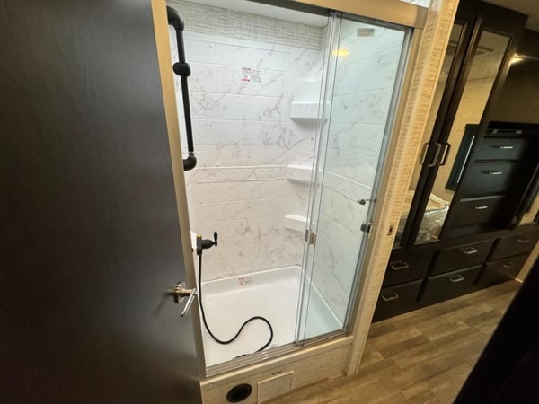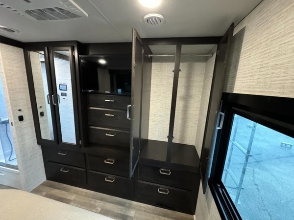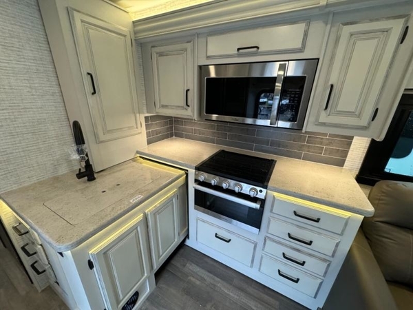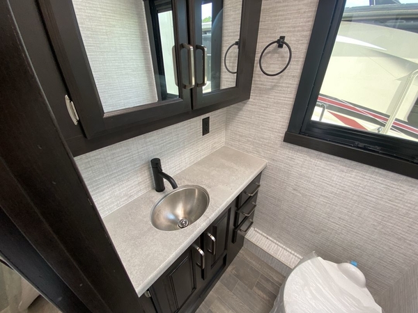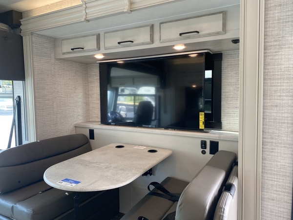 The fun is just about to begin with this Precept Class A gas motorhome! You will have an amazing night of sleep on the RV king bed slide back in the private bedroom, and the bedroom also offers you an LED TV to watch while you relax. The separated bathroom gives you a chance to have two people getting ready at the same time, and the opposing slides in the main living area provide some extra room for lounging or socializing. As you drive down the road, you'll appreciate the removable cockpit table that sits in between the swivel cab seats, and you can create some extra sleeping space by adding the optional drop-down overhead bunk in the cab.