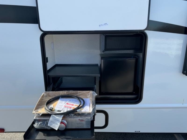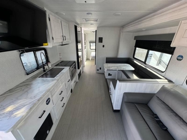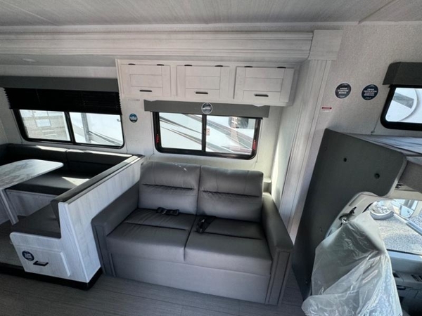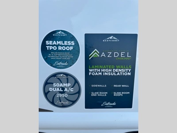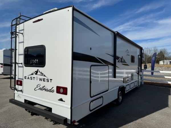 With any Entrada Class C gas motorhome from EAST TO WEST, the construction consists of a completely laminated coach, a one-piece molded fiberglass front cap, 2" thick sidewalls with Azdel composite exterior, a Dicor Diflex ll TPO roof, and integrated entry step. Some of the Entrada value package features include 12V tank heaters to camp during the cooler months, the Winegard Air 360+, plus backup and sideview cameras with monitor for safety on and off the road. The interior offers a 7-foot interior height for a spacious feel, and hardwood shaker style cabinets. Choose an Entrada for its tasteful design, attention to detail, bright interior and/or affordable price-point!