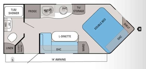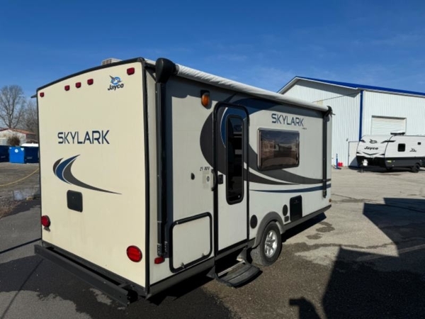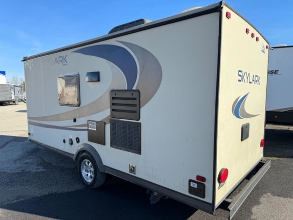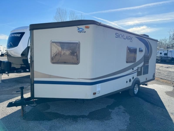 Skylark Travel Trailer, Rear Tub/Shower, Lav., Med. Cab.., Toilet, Linen, Closet/Pantry, L-Dinette, Ward., Double Bed, Shelf, TV/Storage, Single Galley Sink, 2-Burner Range, Microwave, Refrigerator, Overhead Cabinets Throughout, 14' Awning & Much More.