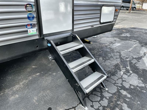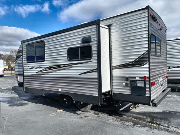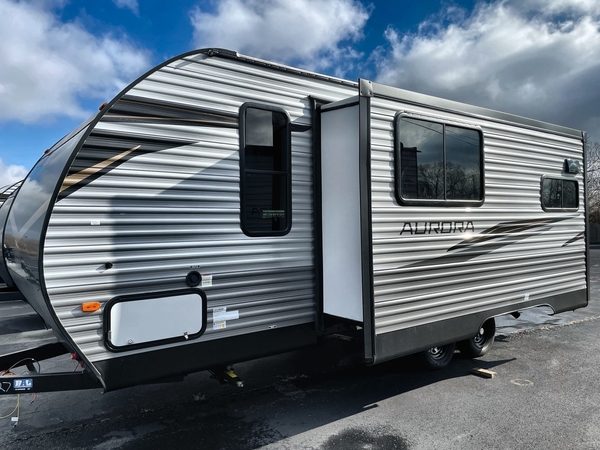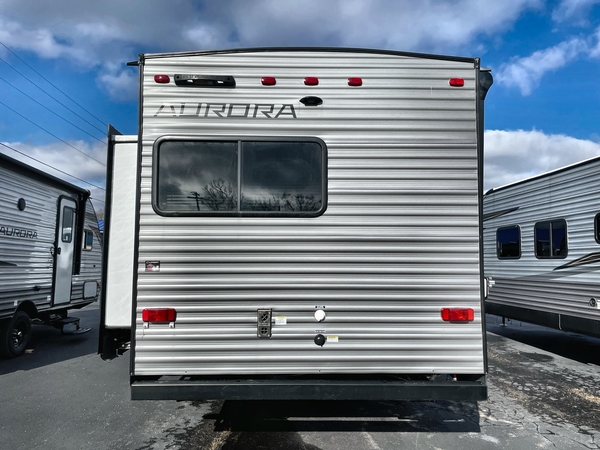 Comfortability, usability, and quality is what you will find in each one of these Forest River Aurora travel trailers, toy haulers or destination trailers! They are designed with a superior build and packed full with industry leading, functional, and distinctive standard features. SolidStep entrance steps and a Safe-T rail door assist on main entry door to help you safely enter and exit the unit. The diamond plate rock guard will protect your unit from road debris and the nitrogen filled radial tires, which keep their pressure longer, offer better fuel economy. You will also find upgraded JBL Elite exterior speakers outside, an electric awning with multicolor lights and remote, plus flush mount baggage doors for easy packing. The interiors are beautifully designed with a deep undermount farm style sink, stainless steel appliances, and linoleum flooring throughout which will be easy to clean. Come find your favorite model today!