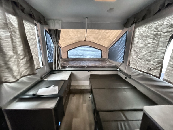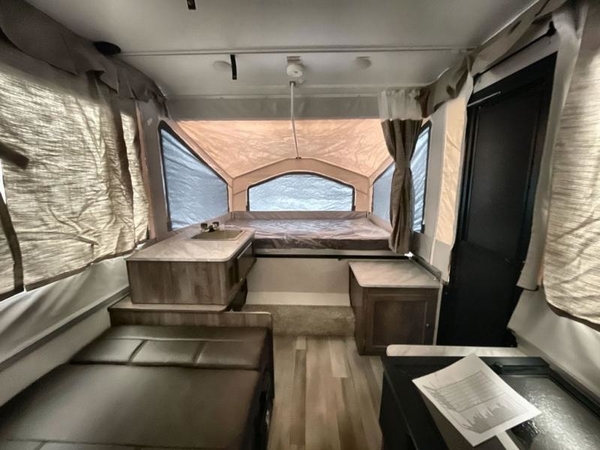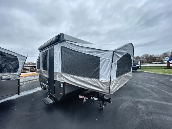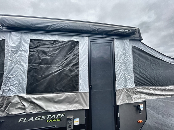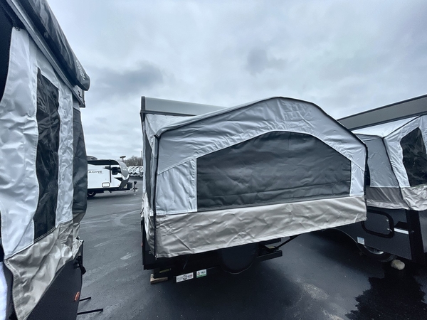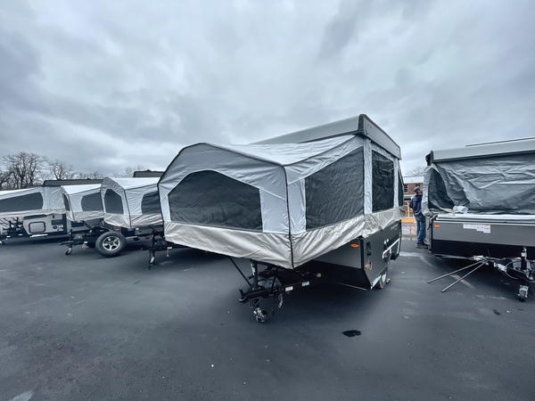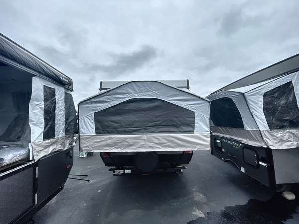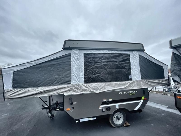 Retire the family tent for one of these Forest River Flagstaff MAC Limited Series folding pop-up campers! They might be light on features, but they don't lack in comfort or quality. Each model comes with a heated mattress on the bunk ends, wood look flooring, and a flip-down galley with storage for dishes and snacks. The carry-out range is super handy to grill juicy burgers while breathing in fresh air under an awning to keep you protected rain or shine.