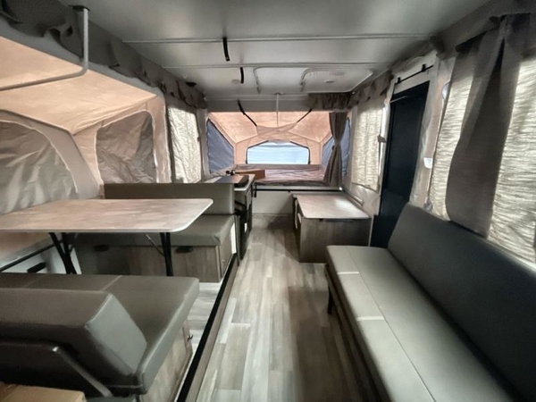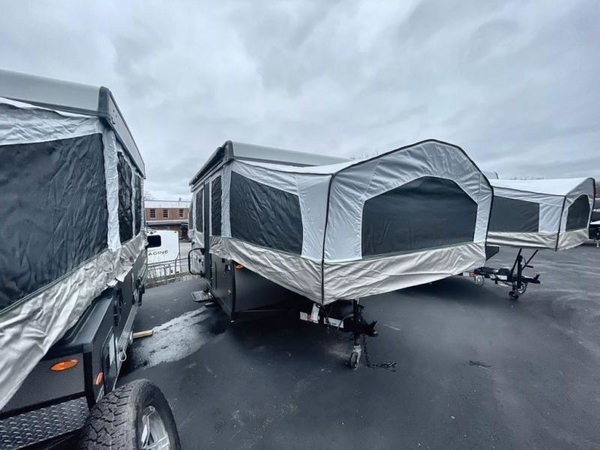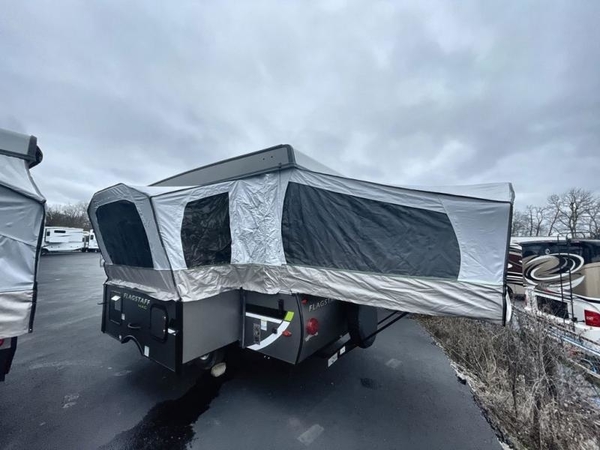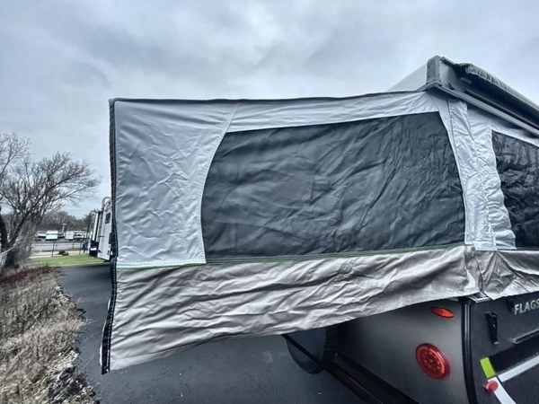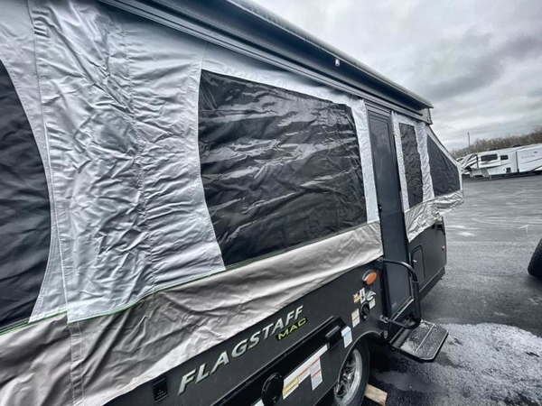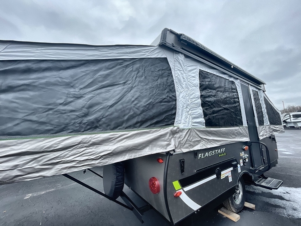 Retire the family tent for one of these Forest River Flagstaff MAC Series folding pop-up campers! Each trip will be one to remember because it will be so easy to load up and head out, yet you will still have what you need to enjoy your time away. The Flagstaff MAC Series includes Vinolon Supreme tenting material, storage nets over the bunks for your belongings, and heated mattress bunk ends for maximum comfort. Each model has a power roof lift and four stabilizer jacks with sand pads for easy set-up, a one-piece screen door to keep the bugs out, and ProRac permanent crossbars for added durability. There are many more features that make the MAC Series folding pop-up camper the perfect camping trailer, like the exterior awning with LED lighting, a 20,000 BTU furnace, a water filtration system, plus more!