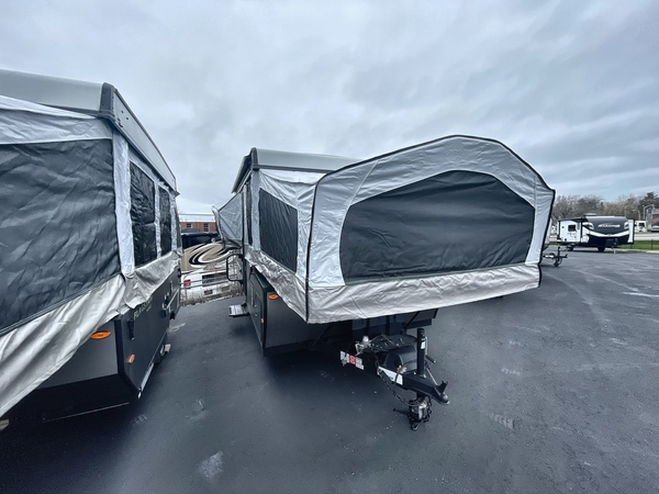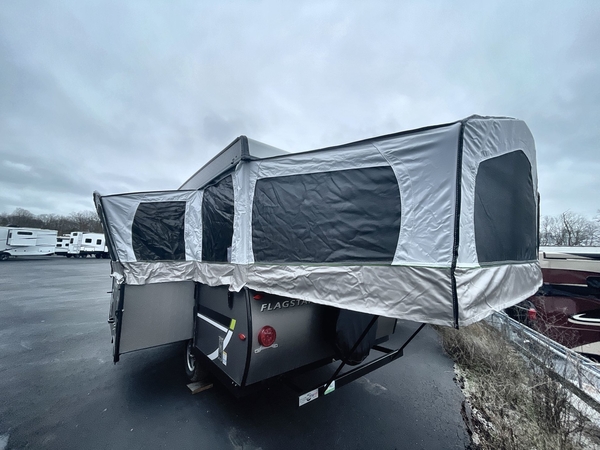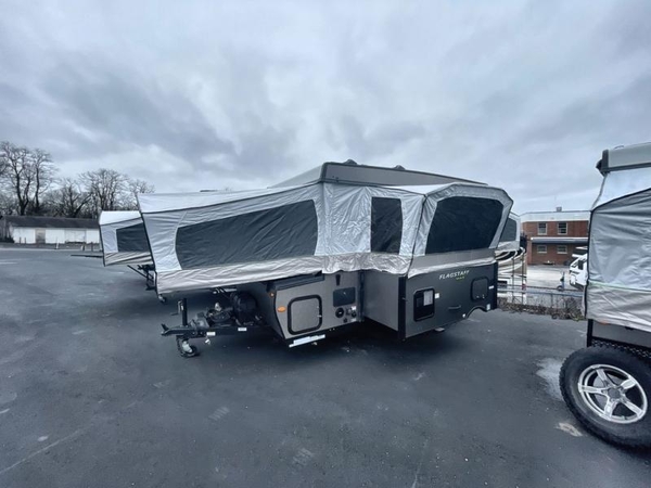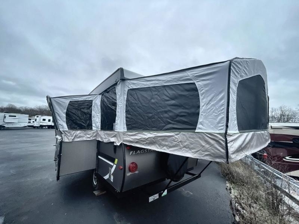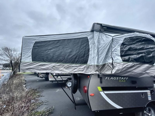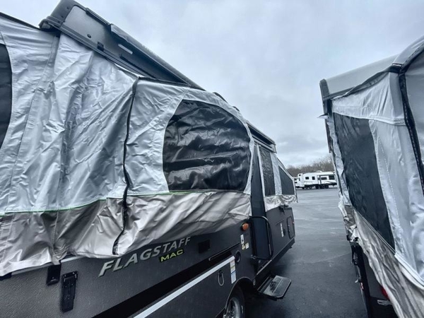 Retire the family tent for one of these Forest River Flagstaff MAC Series folding pop-up campers! Each trip will be one to remember because it will be so easy to load up and head out, yet you will still have what you need to enjoy your time away. The Flagstaff MAC Series includes Vinolon Supreme tenting material, storage nets over the bunks for your belongings, and heated mattress bunk ends for maximum comfort. Each model has a power roof lift and four stabilizer jacks with sand pads for easy set-up, a one-piece screen door to keep the bugs out, and ProRac permanent crossbars for added durability. There are many more features that make the MAC Series folding pop-up camper the perfect camping trailer, like the exterior awning with LED lighting, a 20,000 BTU furnace, a water filtration system, plus so much more!