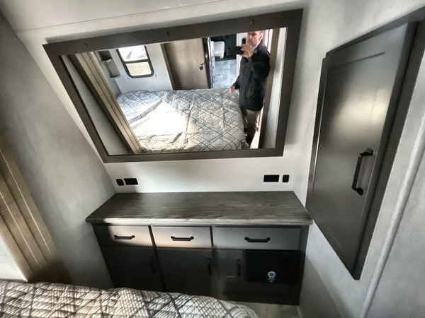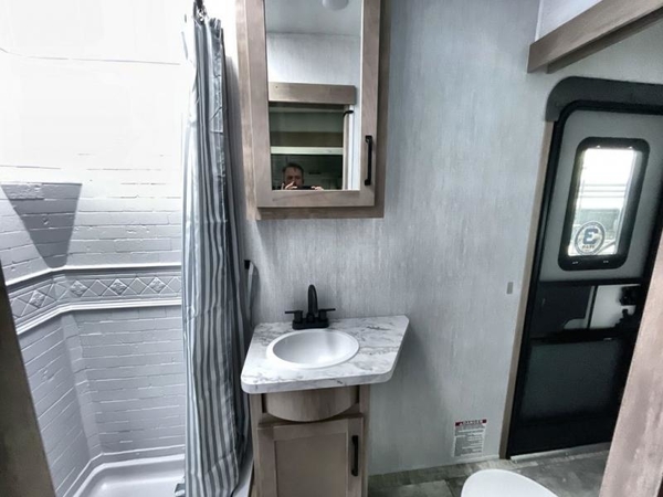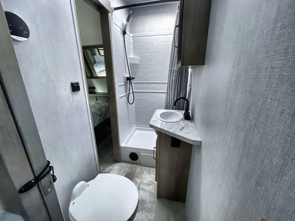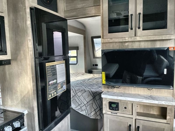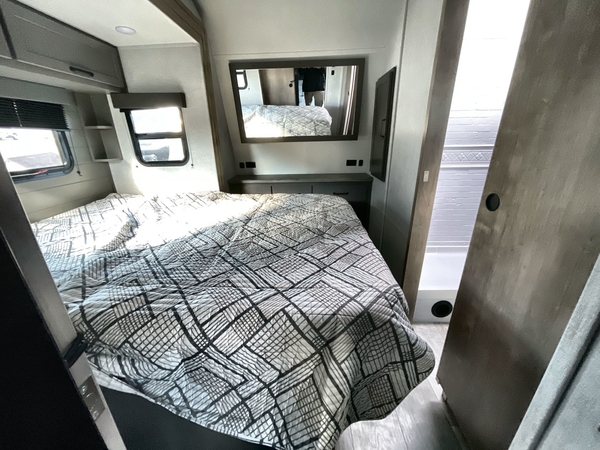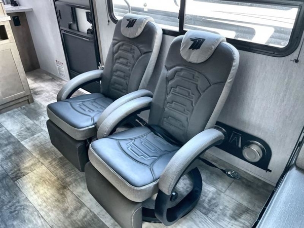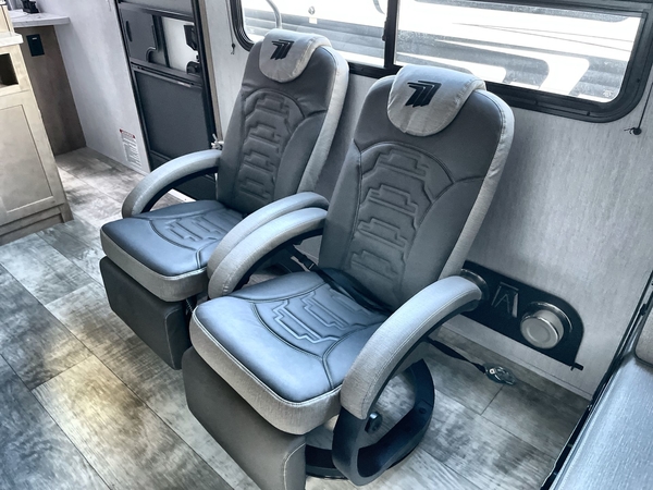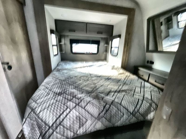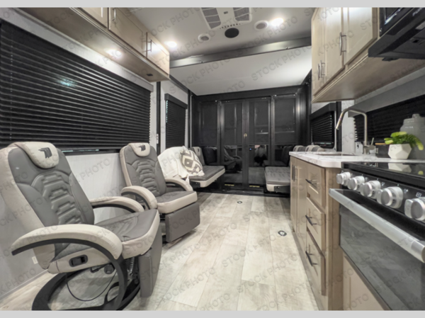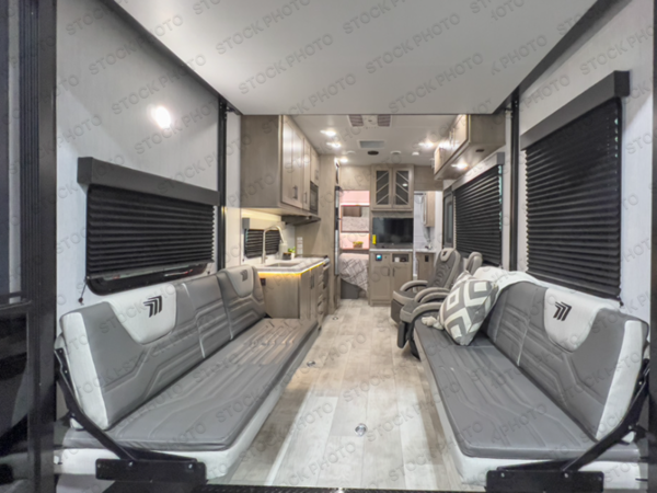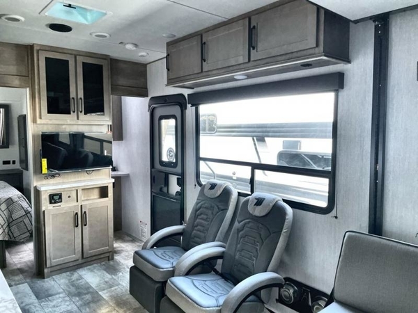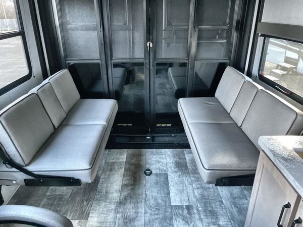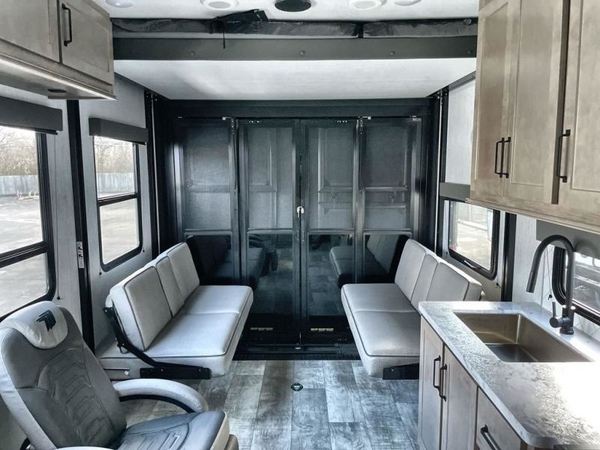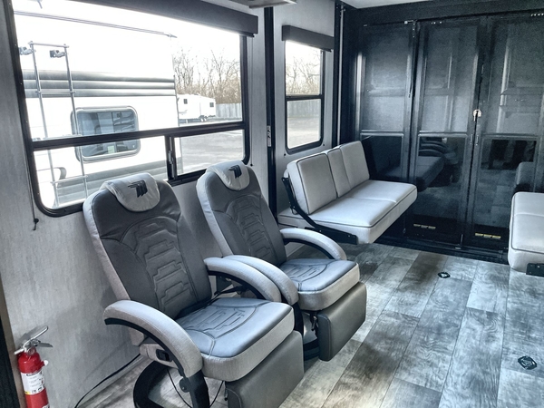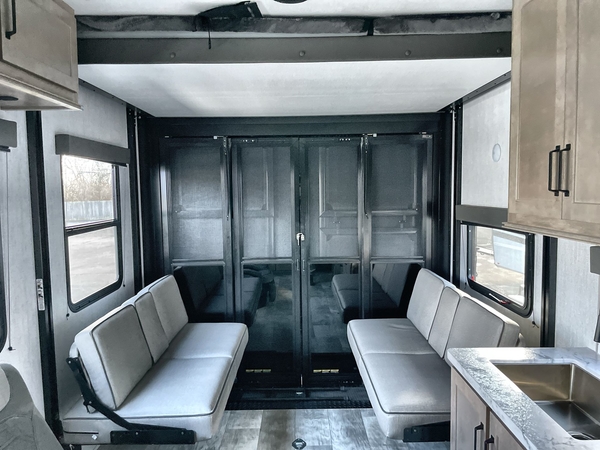 You don't have to rough it with all the amenities found in this Momentum G-Class toy hauler including your own master suite with a walk-around queen bed slide and private access into the dual-entry bathroom. The kids or your friends can sleep on the Happi-Jac power bunk above the rollover sofas with a table, and the Euro chairs can become the waiting area for the next rider. Keep the party going all weekend long with your very own fuel station and the exterior speakers. Come see why this model will fit perfectly into your off-road lifestyle!