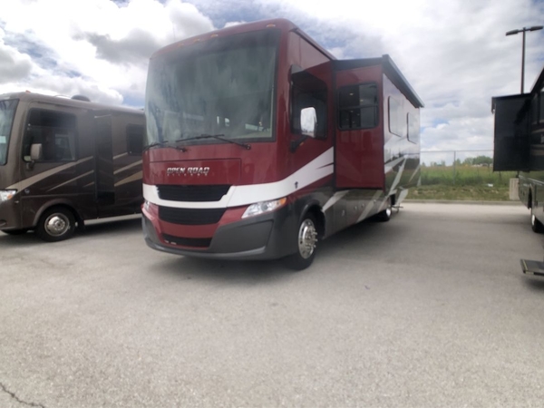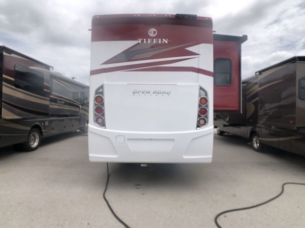 Every one of these Tiffin Motorhomes Open Road Allegro Class A gas motorhomes are ready to go when ever you are! A Ford 7.3L V8 engine powers these units and a durable, yet lightweight, tubular aluminum wall skeleton holds them together. They are beautifully designed with handcrafted cabinetry, Ultrafabrics, and a panoramic kitchen galley window for breathtaking views. A couple electronic features you will appreciate include an exterior TV with a soundbar and a Spyder multiplex system, plus there are two 13.5k BUT AC units to keep you cool on those hot summer days. The color back-up camera and side-view cameras will make parking easier than ever, and you'll appreciate hydraulic leveling jacks with a control panel for hassle-free set up. With a luxurious design, innovative technologies, and thoughtful amenities, what more could you want?!