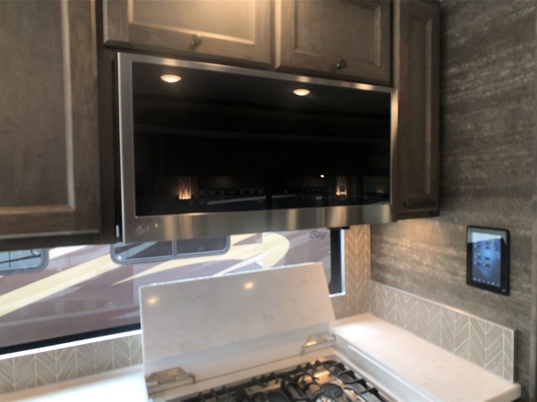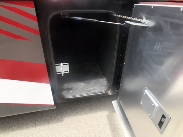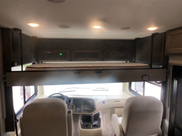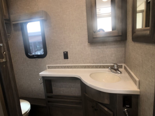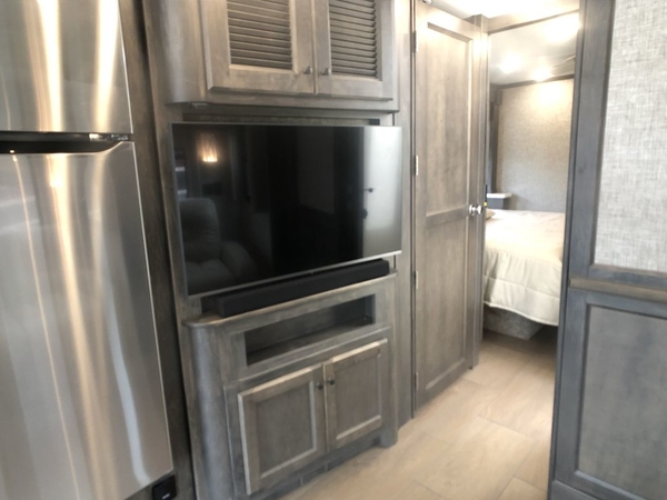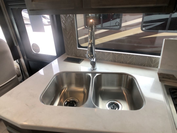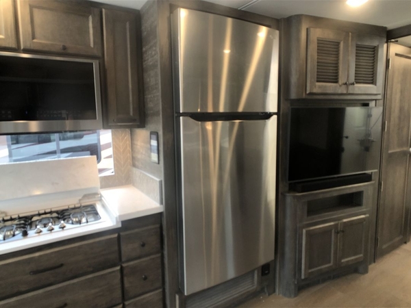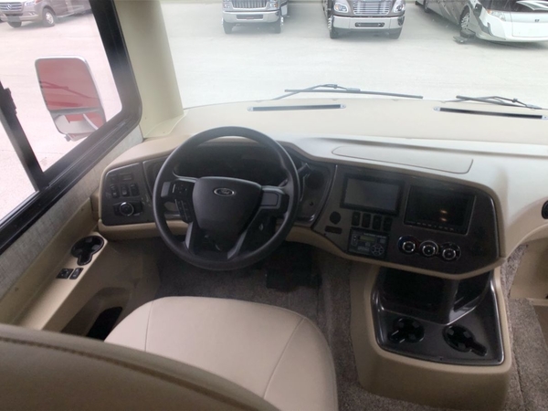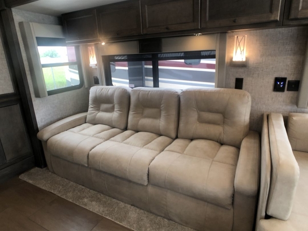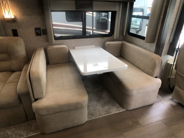 You will feel right at home in this motorhome! It features a rear private bedroom with a king bed slide that has an egress window behind it, a wardrobe with drawers, and an optional combo washer/dryer. Just outside the bedroom is the split-style bath where one person can freshen up in the shower while another uses the private toilet and sink. After you have prepared a delicious meal with the three burner liquid propane cooktop, you can enjoy it at the booth dinette-sleeper. The dinette can become your guests' sleeping space at night, along with the flip and fold sofa bed or the optional drop-down front bunk! This model also includes a living area TV with an optional fireplace below, a 20 cu. ft. stainless steel residential refrigerator with a top freezer, and many more interior comforts!