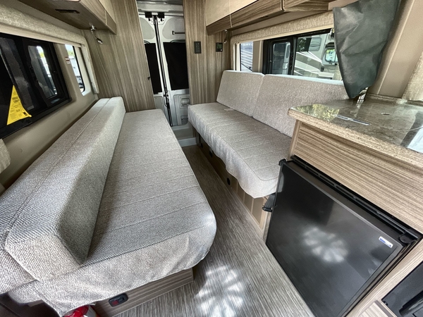 Head out on your greatest adventures with one of these Jayco Swift Class B gas motorhomes! Off-grid camping is made hassle-free with the 200-watt roof-mounted GoPower solar panel, plus there is an Onan 2800W generator with auto-gen start for all your other power needs. Each model includes the JRide system with Hellwig helper springs and a premium heavy-duty suspension for smooth handling, and the Thule armless patio awning with LED lights will create an outdoor living space you are sure to love. Head inside to find a solid surface kitchen countertop with a pull-out extension, four sliding vented windows, a soft-touch vinyl ceiling, plus many more comforts. The Uconnect 5 NAV infotainment center with Apple CarPlay® and Android Auto will also come in handy as you travel to your destination!