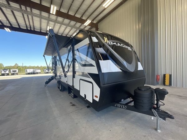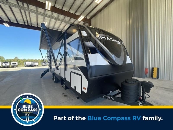 Just imagine leaving the world behind and secluding yourself away with your favorite people in your Grand Design Imagine travel trailer! The Imagine has been designed to enjoy extended season camping and includes a high-capacity furnace, a heated and enclosed underbelly with suspended tanks, a designated heat duct to the subfloor, and a high-density roof insulation with attic vent. You'll have maximum head room on the interior with 81" radius ceilings, and large panoramic windows to let in natural lighting. The exclusive drop-frame pass-through storage compartment is going to allow you to bring along lots of equipment, and the universal docking station is an all-in-one location for utilities and hook-ups. You'll also have industry-leading tank capacities so that you can fill and empty your tanks less often.