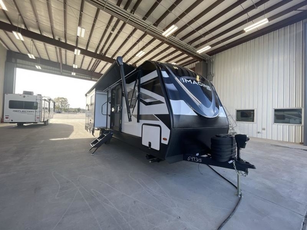 Just imagine leaving the world behind and secluding yourself away with your favorite people in your Grand Design Imagine travel trailer! The Imagine has been designed to enjoy extended season camping and includes a high-capacity furnace, a heated and enclosed underbelly with suspended tanks, a designated heat duct to the subfloor, and a high-density roof insulation with attic vent. You'll have maximum head room on the interior with 81" radius ceilings, and large panoramic windows to let in natural lighting. The exclusive drop-frame pass-through storage compartment is going to allow you to bring along lots of equipment, and the universal docking station is an all-in-one location for utilities and hook-ups. You'll also have industry-leading tank capacities so that you can fill and empty your tanks less often.