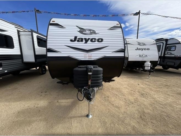 The Jayco Jay Flight SLX travel trailer is quite easy to own because it is lightweight, and it comes with a single axle. Built on a fully integrated A-frame with galvanized-steel, impact-resistant wheel wells, the Jay Flight SLX has quality at its very foundation. That quality continues on to the electric self-adjusting brakes, easy-lube hubs, Magnum Truss roof system, and LP quick connect. Some of what the mandatory Customer Value Package includes backup camera prep, Keyed-Alike entry and baggage doors, marine grade exterior speakers, and an on-demand tankless water heater. The optional STX Edition for Indiana built units only and the optional Baja Package built for Idaho unit only includes Goodyear off-road tires, an enclosed underbelly, a deluxe graphics package, and a wide-stance axle to name a few features.
