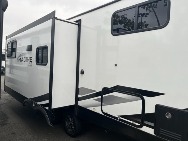 Let your imagination run wild with the possibilities that the Grand Design Imagine XLS travel trailer can provide! The Imagine XLS has been built with oversized tank capacities, an extra-large 2" fresh water drain valve, a ducted A/C system, a power tongue jack, and a heated and enclosed underbelly with suspended tanks. There is a designated heat duct to the subfloor and a residential ductless heating system throughout. For outdoor adventures, the electric awning with LED lights will enable you to stay protected, and the exterior speakers make any time outside a party. You will also love the XLS Solar Package that comes with a 165W roof mounted solar panel, a 25 Amp charge controller, a 12V 10 cu. ft. refrigerator, and roof mounted quick connect plugs!