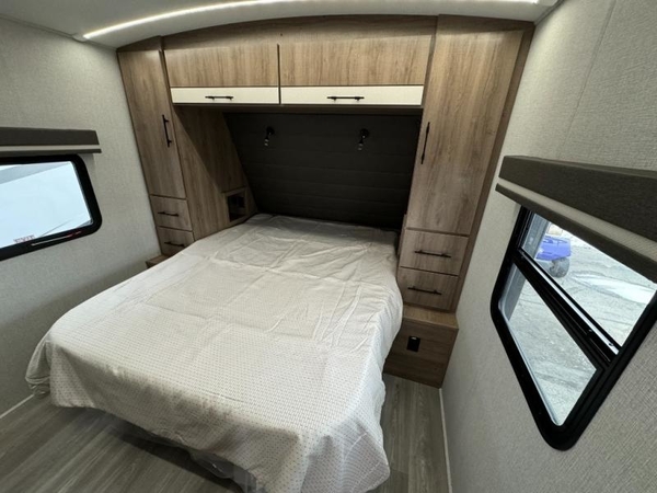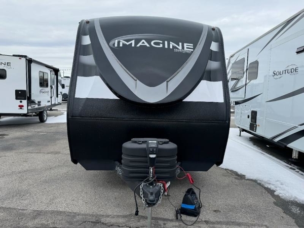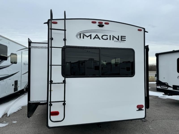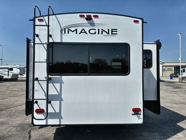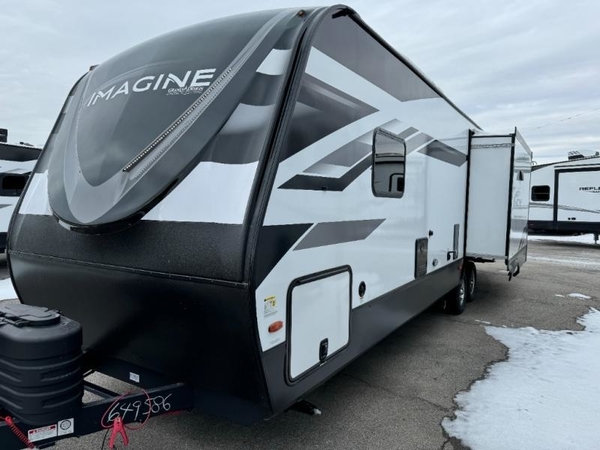 Just imagine leaving the world behind and secluding yourself away with your favorite people in your Grand Design Imagine travel trailer! The Imagine has been designed to enjoy extended season camping and includes a high-capacity furnace, a heated and enclosed underbelly with suspended tanks, a designated heat duct to the subfloor, and a high-density roof insulation with attic vent. You'll have maximum head room on the interior with 81" radius ceilings, and large panoramic windows to let in natural lighting. The exclusive drop-frame pass-through storage compartment is going to allow you to bring along lots of equipment, and the universal docking station is an all-in-one location for utilities and hook-ups. You'll also have industry-leading tank capacities so that you can fill and empty your tanks less often.