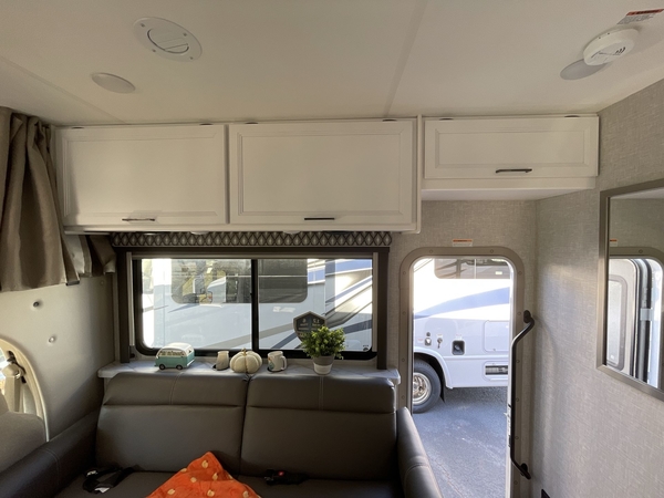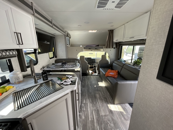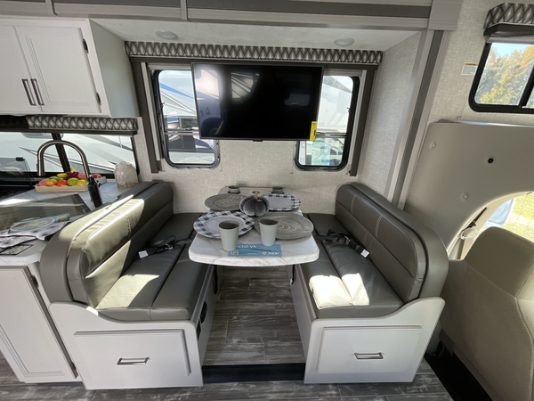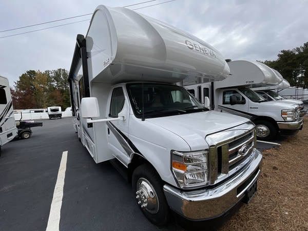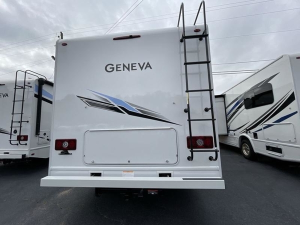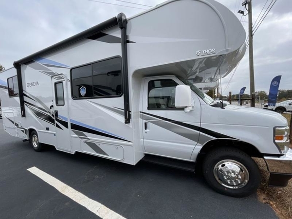 You will feel right at home in every one of these Thor Motor Coach Geneva Class C gas motorhomes! The Ford E-Series chassis holds them together and you can easily tow a car or trailer with the 8,000 lb. hitch. A premium one-piece Crossflex roofing material and welded tubular aluminum roof and sidewall cage construction will hold up for years to come. Each model has unique living area arrangements, fully equipped kitchens, and residential vinyl flooring that are easy to clean. The 7" touchscreen dash radio, Google Android Auto- Apple Car Play, and back-up monitor lets you play your favorite tunes and prevent any bumps or dings. Come choose your favorite one today!