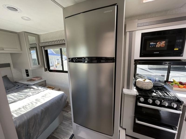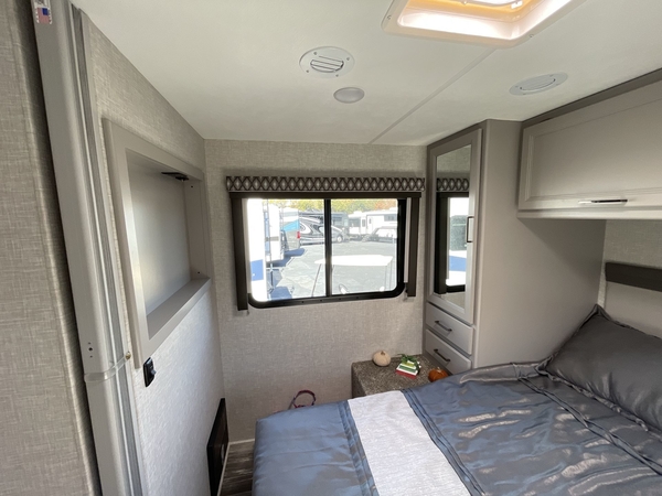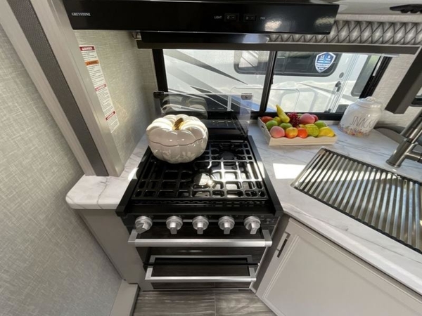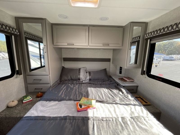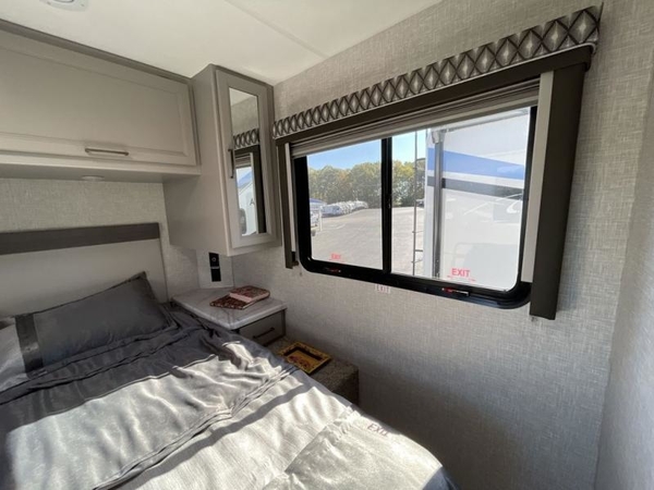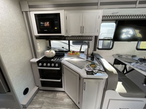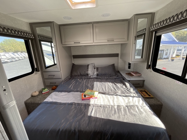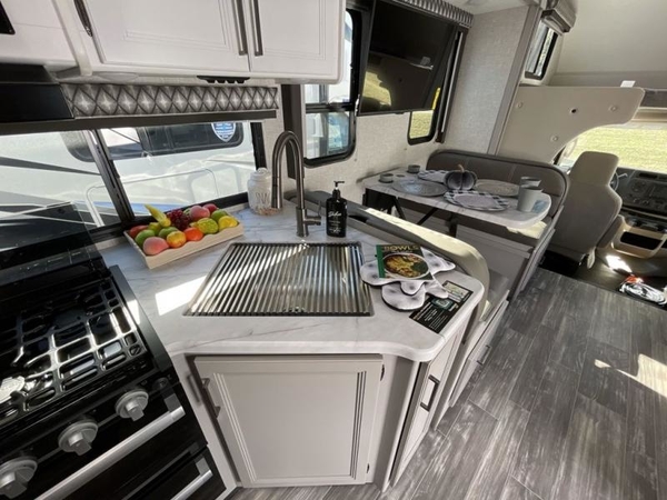 Bring the grandkids along with you in this versatile motorhome! You can get a good night's rest on the 60" x 74" queen bed in the rear private bedroom which also has closets and a 32" TV, and the 52" x 96" bunk over cab is another sleeping space in addition to the 68" jackknife sofa and the 71" Dream Dinette when you aren't using it to enjoy a meal or play a card game. The chef can prepare their best home cooked meals in the fully equipped kitchen with the three burner cooktop. Freshen up after a fun day at the beach in the full bathroom with the 24" x 36" shower and then watch the big game at the exterior TV. You also have an outside kitchen to prepare delicious meals in the great outdoors!