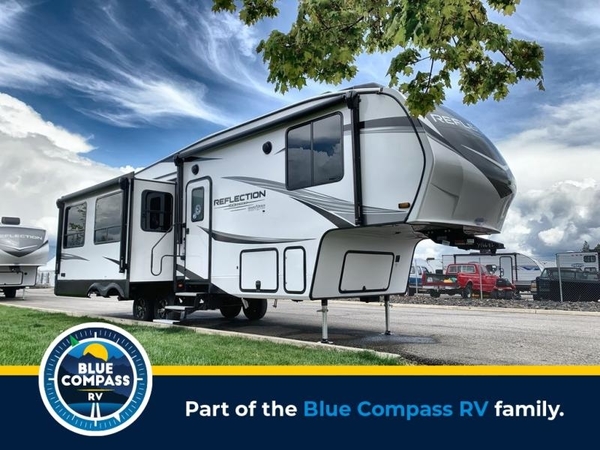 With any Reflection 150 Series fifth wheel by Grand Design, there is more available payload capacity and a broader range of half-ton trucks capable of towing this fifth wheel, and no slider hitch is needed thanks to the 90-degree turning radius which makes them short bed friendly and easier to tow. The mandatory Ultimate Power package provides a "One-Touch" automatic leveling system and a detachable power cord with LED light for easy setup, plus motion sensor pass-through lighting and entry lighting, and the Tire Linc TPMS will help you stay safe on the road. The interior offers residential luxury from the cabinetry and premium congoleum flooring, plus the booth dinette to the residential-style window treatment. Make your refined decision today!