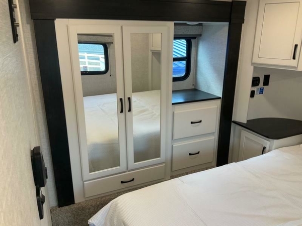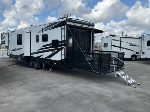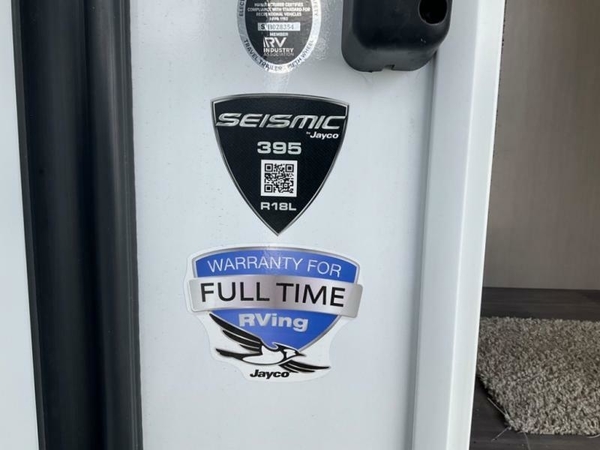 One look at the Seismic toy haulers by Jayco, and you'll never go back! Each model features a custom automotive-grade vinyl exterior graphics package, a painted fiberglass front cap with built-in LED lighting, and 102" wide-body structural steel I-beam construction. You'll find the pass-through storage with Slam-Latch baggage doors will make unpacking easier than ever, and the rear ramp door/patio with anti-slip, non-skid flooring will allow you to unload your toys with no trouble at all. These toy haulers feature a three seasons garage wall/doors, a 30 gallon fuel tank with a timer, and exterior marine-grade speakers to keep the party going. The Climate Shield zero degree tested weather protection includes a 35,000 BTU furnace, PEX plumbing, and a fully enclosed and heated underbelly so you can enjoy your adventures year around. And we haven't even touched on the interior luxuries you'll find, like solid hardwood cabinet doors, residential vinyl flooring made in the USA, night shades, and more!