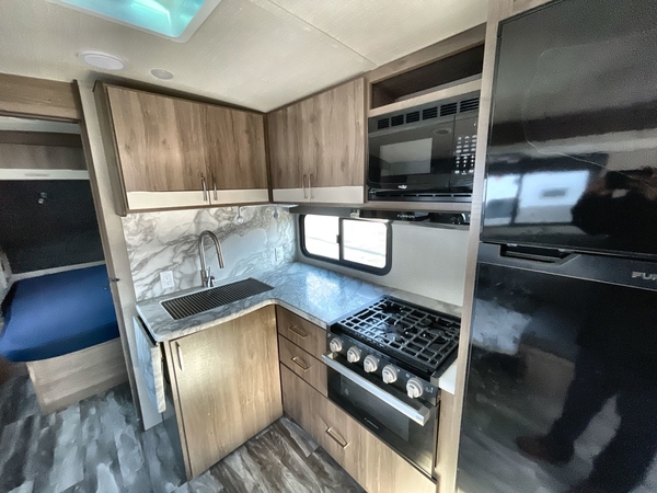 You will be able to bring along your favorite furry friend in this pet-friendly Imagine travel trailer! There is a pet dish that you can use to feed your pup, and when you enter this trailer, you'll find convenient shoe storage to your right below the wardrobe/pantry. The full rear bathroom has a 30" x 36" shower with skylight for you to rinse off after you come in from an afternoon hike, and you can lounge on the tri-fold sofa or U-shaped dinette with removable ottoman after you are clean. The large slide creates more interior space, so you can cook freely on the three-burner range with oven in the kitchen. You'll have a private bedroom that you can retreat to at the end of a long day, and the 60" x 80" queen bed will provide comfort while you sleep.