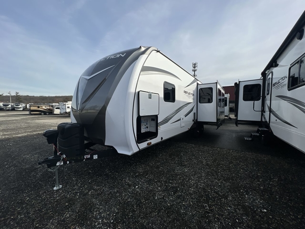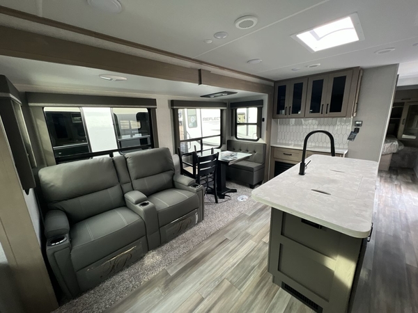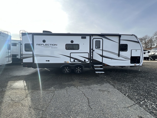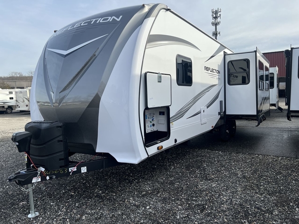 With any Reflection travel trailer by Grand Design, you will have a solar panel for off-grid camping and a 50 amp charge controller and inverter prep, a Universal All-In-One docking station, unobstructed pass-through storage, and nitrogen filled radial tires. Some other top features include the 30" stainless steel microwave, the maximum 7-foot headroom, and the ductless heating system with no vents in the floor to collect debris. Each is constructed of gel coat exterior sidewalls, residential 5" truss rafters, walk-on roof decking, a fiberglass and radiant foil roof and front cap insulation plus laminated aluminum framed side walls, roof and end walls in slide rooms. Choose luxury, value, and towability over all the others, take home a Reflection of your good taste!