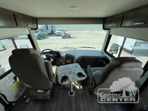 The Alante Class A gas motorhome comes equipped with a JRide package that includes a computer-balanced driveshaft, jounce bumpers, front and rear stabilizer bars, and SACHS shocks. You will appreciate having the industry's largest travel-view window on the entrance door providing amazing views and extra natural light. Inside, you will find high-intensity recessed LED ceiling lights, ball-bearing drawer guides, and hardwood cabinetry. Plus, the Soundstream Infotainment dash radio with GPS and CD/DVD player will enhance all of your upcoming road trips. Your home on the road is waiting for you, so choose your favorite Alante and get to it!