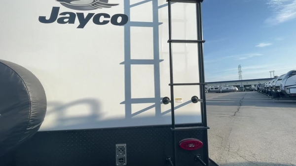 Weekends at the lake are made comfortable in this single slide out travel trailer. You will enjoy your own 54" x 80" front bed so you don't have to sleep on the floor, plus there is a jack-knife sofa if you have an overnight guest. The full bath features a radius shower with a skylight, plus plenty of storage space for your medicines and toiletries. This model includes a microwave oven and a three burner cooktop to prepare meals each day, and an 10 cu. ft. 12V refrigerator for perishables. You will also find an exterior refrigerator for cold drinks, plus an outside griddle for the JayPort system!