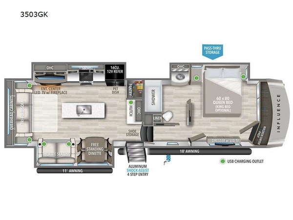 Grand Design Influence fifth wheel 3503GK highlights: