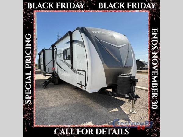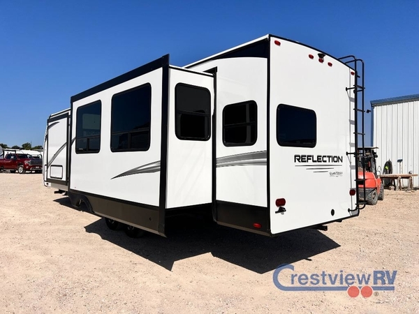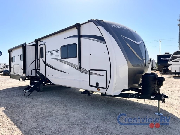 With any Reflection travel trailer by Grand Design, you will have a solar panel for off-grid camping and a 50 amp charge controller and inverter prep, a Universal All-In-One docking station, unobstructed pass-through storage, and nitrogen filled radial tires. Some other top features include the 30" stainless steel microwave, the maximum 7-foot headroom, and the ductless heating system with no vents in the floor to collect debris. Each is constructed of gel coat exterior sidewalls, residential 5" truss rafters, walk-on roof decking, a fiberglass and radiant foil roof and front cap insulation plus laminated aluminum framed side walls, roof and end walls in slide rooms. Choose luxury, value, and towability over all the others, take home a Reflection of your good taste!