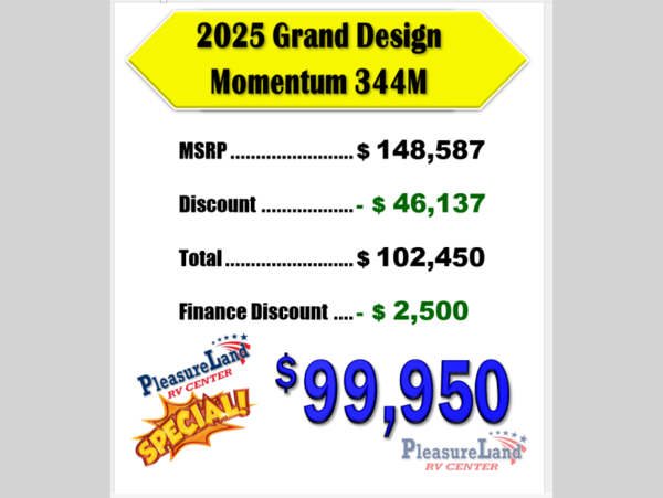 Grand Design Momentum M-Class toy hauler 344M highlights: