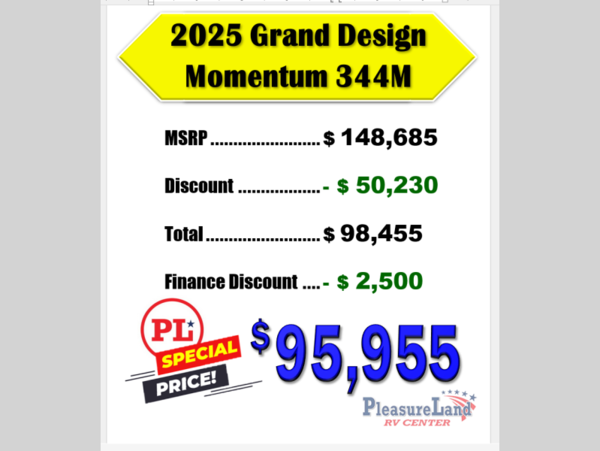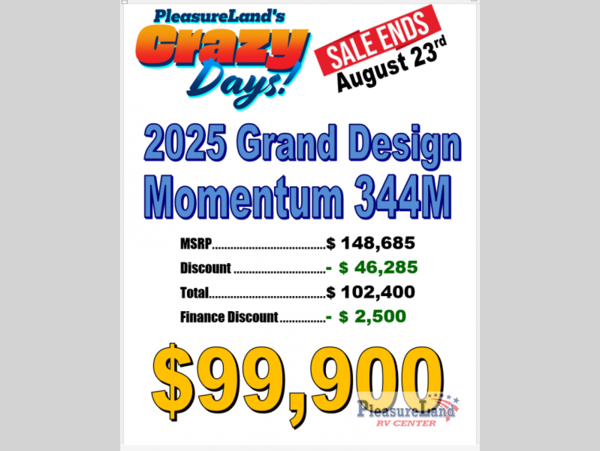 Grand Design Momentum M-Class toy hauler 344M highlights: