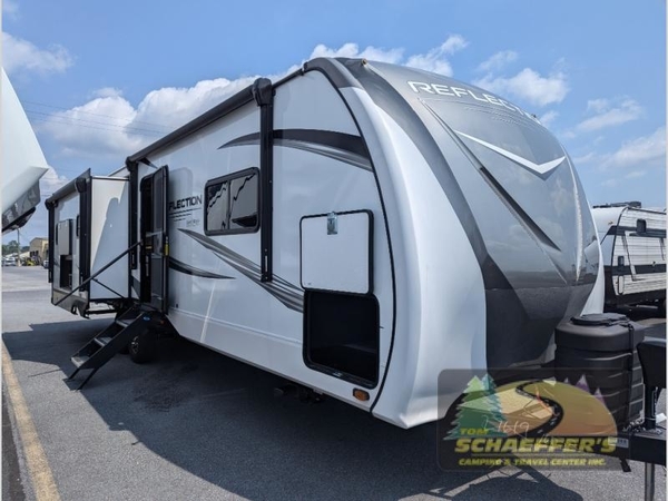 With any Reflection travel trailer by Grand Design, you will have a solar panel for off-grid camping and a 50 amp charge controller and inverter prep, a Universal All-In-One docking station, unobstructed pass-through storage, and nitrogen filled radial tires. Some other top features include the 30" stainless steel microwave, the maximum 7-foot headroom, and the ductless heating system with no vents in the floor to collect debris. Each is constructed of gel coat exterior sidewalls, residential 5" truss rafters, walk-on roof decking, a fiberglass and radiant foil roof and front cap insulation plus laminated aluminum framed side walls, roof and end walls in slide rooms. Choose luxury, value, and towability over all the others, take home a Reflection of your good taste!
