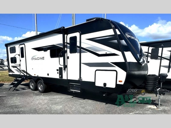 Just imagine leaving the world behind and secluding yourself away with your favorite people in your Grand Design Imagine travel trailer! The Imagine has been designed to enjoy extended season camping and includes a high-capacity furnace, a heated and enclosed underbelly with suspended tanks, a designated heat duct to the subfloor, and a high-density roof insulation with attic vent. You'll have maximum head room on the interior with 81" radius ceilings, and large panoramic windows to let in natural lighting. The exclusive drop-frame pass-through storage compartment is going to allow you to bring along lots of equipment, and the universal docking station is an all-in-one location for utilities and hook-ups. You'll also have industry-leading tank capacities so that you can fill and empty your tanks less often.