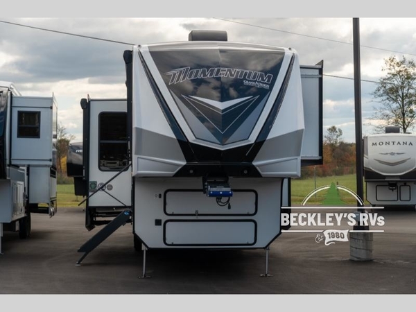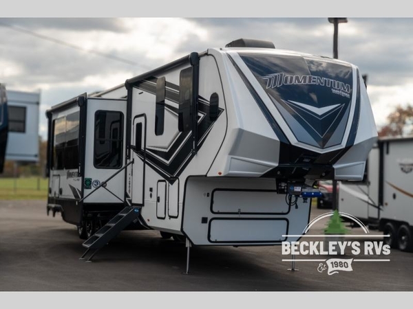 With any Momentum M-Class toy hauler by Grand Design, you will enjoy luxury at every turn! They have been constructed to a superior standard with a thermal roof design, triple insulated main floor and garage floor, and a Rail-Tite underbelly seal that will allow you to camp in all elements. Each model also features an 8' 5" wide body chassis with a wide rail design, no wheel wheels, and a dovetail entry for easier loading. The Stealth A/C system provides maximum cooling power, and the CRE3000 suspension system means you can enjoy a smooth tow each time. You will love the luxurious interior with a professional grade stainless steel cooktop, interior color changing LED accent lighting, a fiberglass shower with a glass door, and solid surface countertops.