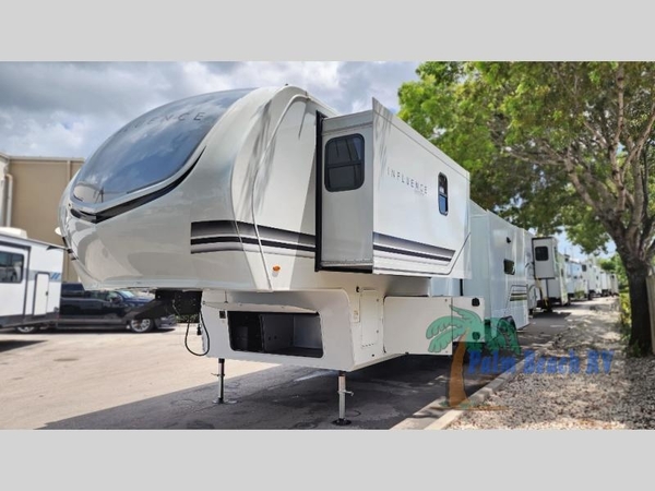Any Grand Design Influence fifth wheel features five-sided aluminum cage construction with a walk-on roof and a fully enclosed underbelly with heated tanks and storage for all weather camping. For peace of mind, the MORryde CRE3000 Suspension system will provide safe and smooth towing, and the 101" widebody construction offers all the room you need and that is before multiple slides are fully engaged. You will appreciate the Keyed-Alike locks, slam-latch baggage doors with magnetic door catches, exterior security light, and SolidStep entry steps. On the inside, Congoleum flooring, premium roller shades for privacy, a hallway handrail for safety, and nightstands with USB ports to keep all of your electronics fully charged. You will also love the On Demand tankless water heater when showering, plus the added heat and ambiance from an electric fireplace, and so much more!