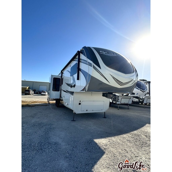 This 2021 Grand Design Solitude 375RES is a luxury fifth-wheel RV designed for extended stays and full-time living. This model features a spacious rear entertainment area, a fully-equipped kitchen with a residential feel, and a master bedroom with ample storage. Key highlights include high-end finishes, multiple slide-outs for expanded living space, and advanced climate control systems for comfort in various weather conditions. The 375RES offers a blend of home-like comfort and mobile convenience, making it a popular choice for those seeking a premium RV experience.  You can find this USED Solitude 375RES and many other New & Used Grand Design options for sale at Good Life RV in Webster City, IA - We offer financing and we do accept trades! Give us a call today - 515-832-5715!