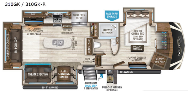 With each Solitude fifth wheel by Grand Design you will receive refined residential finishes, and affordable luxury for your extended stays or weekend get-a-ways. From the solid foundation on an exclusive superchassis and maximum insulation to the taller ceilings, taller and deeper cabinets, the power reclining theatre seating with removable swivel tables including a heat and massage function to the pet dish drawer, the Stealth AC system, and the Weather-Tek package allowing you to travel any season, you will enjoy everything about your Solitude. It's time to redefine luxury living where ever you decide to land.