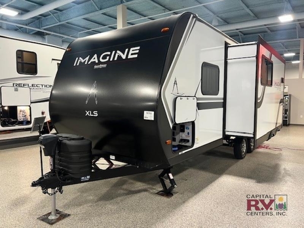 Let your imagination run wild with the possibilities that the Grand Design Imagine XLS travel trailer can provide! The Imagine XLS has been built with oversized tank capacities, an extra-large 2" fresh water drain valve, a ducted A/C system, a power tongue jack, and a heated and enclosed underbelly with suspended tanks. There is a designated heat duct to the subfloor and a residential ductless heating system throughout. For outdoor adventures, the electric awning with LED lights will enable you to stay protected, and the Tuff-Ply pass-thru flooring will withstand your many adventures. You will also love the XLS Solar Package that comes with a 180W roof mounted solar panel, a 40 Amp charge controller, a 12V 10 cu. ft. refrigerator, and roof mounted quick connect plugs!