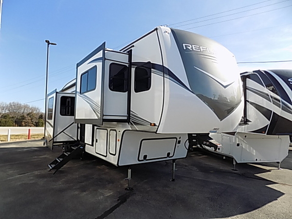 Looking for a great front living room fifth wheel floorplan? Check out the is 2025 Grand Desgin Refelction 360FLS Fifth wheel featuring a front living room with (2) Trif-Fold sofas and theater seating for extra space and comfort. The floorplan is factory equipped with the Peace of Mind Package, Ultimate Power Package, Arctic 4-seasons Package, Solar Package, Goodyear tires, ABS axle assembly with sway control, 16 cubic foot 12 volt refrigerator, 370 watt roof mounted solar panels, TravlFi On-Board WiFi Ready, Swivel Dinette with (2) chairs and storage ottoman, and 2nd low profile ducted 13,500 btu air conditioner. The unit also comes with Grand Desgin's 1/3/5 year factory warranty that is fully transferable to secondary owners.Cleck the RED internet pricing button for our special sale pricing. Remember at Coachlight, NO EXTRA FEES are collected. The sale price is the price you pay. Give Norm or Doug a call at 800-799-7444 for more information.