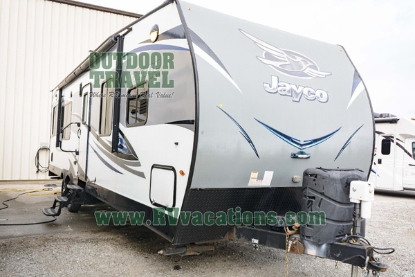 For your next camping trip that includes time spent outdoors four wheeling or riding your dirt bikes, choose this Jayco Octane toy hauler travel trailer.
