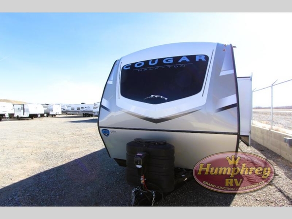 The Keystone Cougar Half-Ton fifth wheel and travel trailers are known as one of America's favorites for a reason! Some of those reasons are the exclusive features that come from Keystone, like the Winegard Air 360+ omni-directional rooftop antenna, the in-floor heating ducts, and the Hyper Deck flooring. The Cougar Half-Ton has a Climate Guard protection package to keep you safe during inclement weather, along with two roof attic vents, PEX plumbing and more. Use the 21" Furrion range with Piezo ignition to create all of those familiar meals from home, and enjoy endless hot showers with the Girard tankless on-demand water heater!